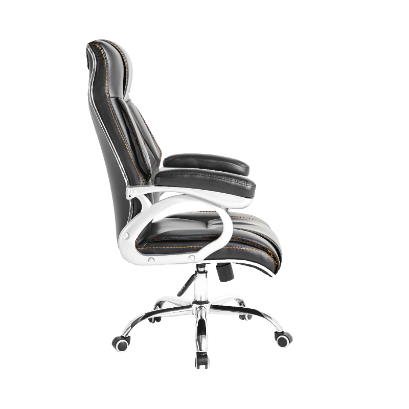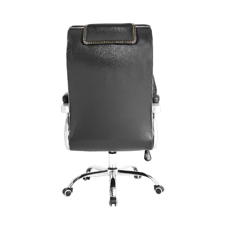 High-Gloss Chrome Foundation: A heavy-duty, mirror-finish chrome base paired with 360° silent-glide casters ensures effortless mobility across any office floor.