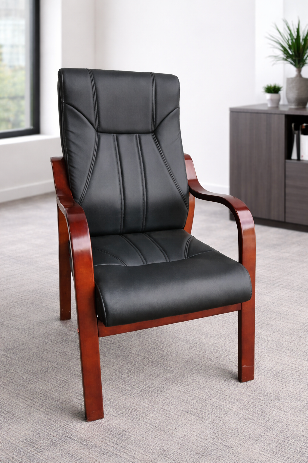 Command the room with this Executive High-Back Guest Chair, where classic craftsmanship meets modern authority. Perfect for reception areas, boardrooms, or as a distinguished side chair in a private office, this seat is designed to leave a lasting impression of prestige and comfort.