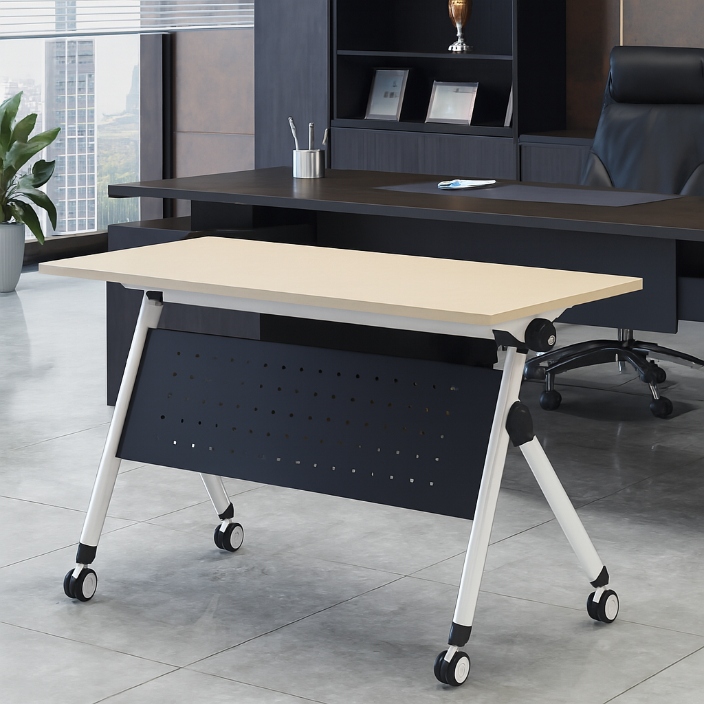Space-Saving Design: The intuitive folding mechanism allows the tabletop to flip vertically, enabling multiple desks to nest together for compact storage when not in use.