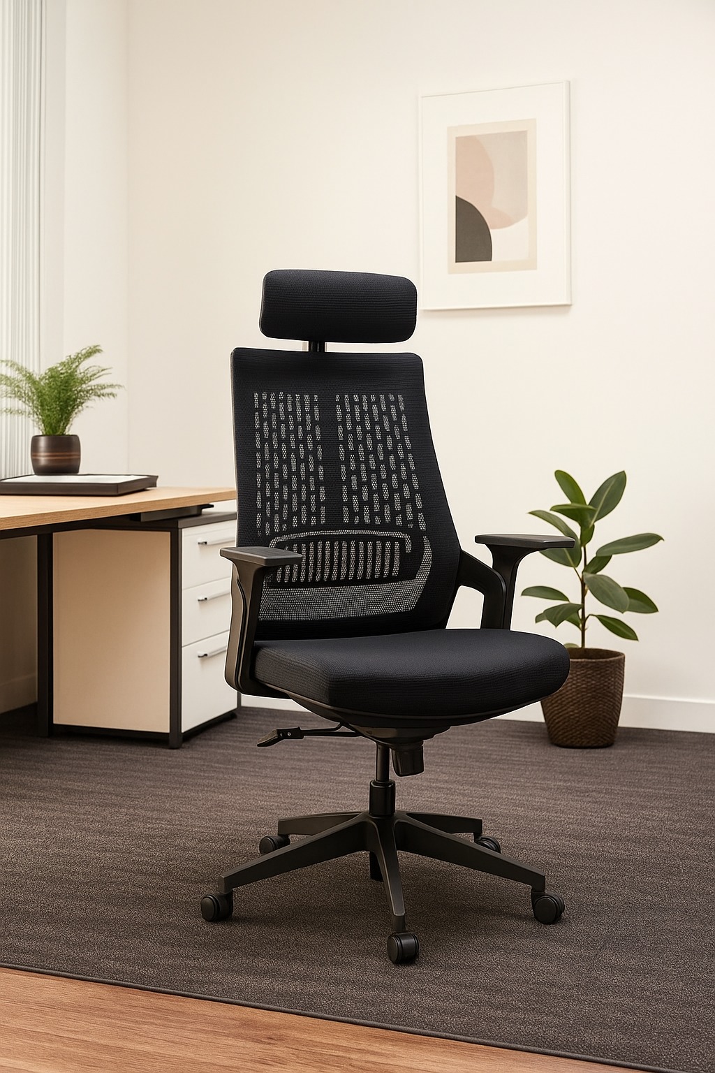 Elevate your workday with the perfect fusion of modern design and orthopedic support. This High-Back Ergonomic Office Chair is meticulously engineered for professionals who demand both style and long-term comfort. Featuring a sleek black finish, it fits seamlessly into any contemporary office or home workspace.