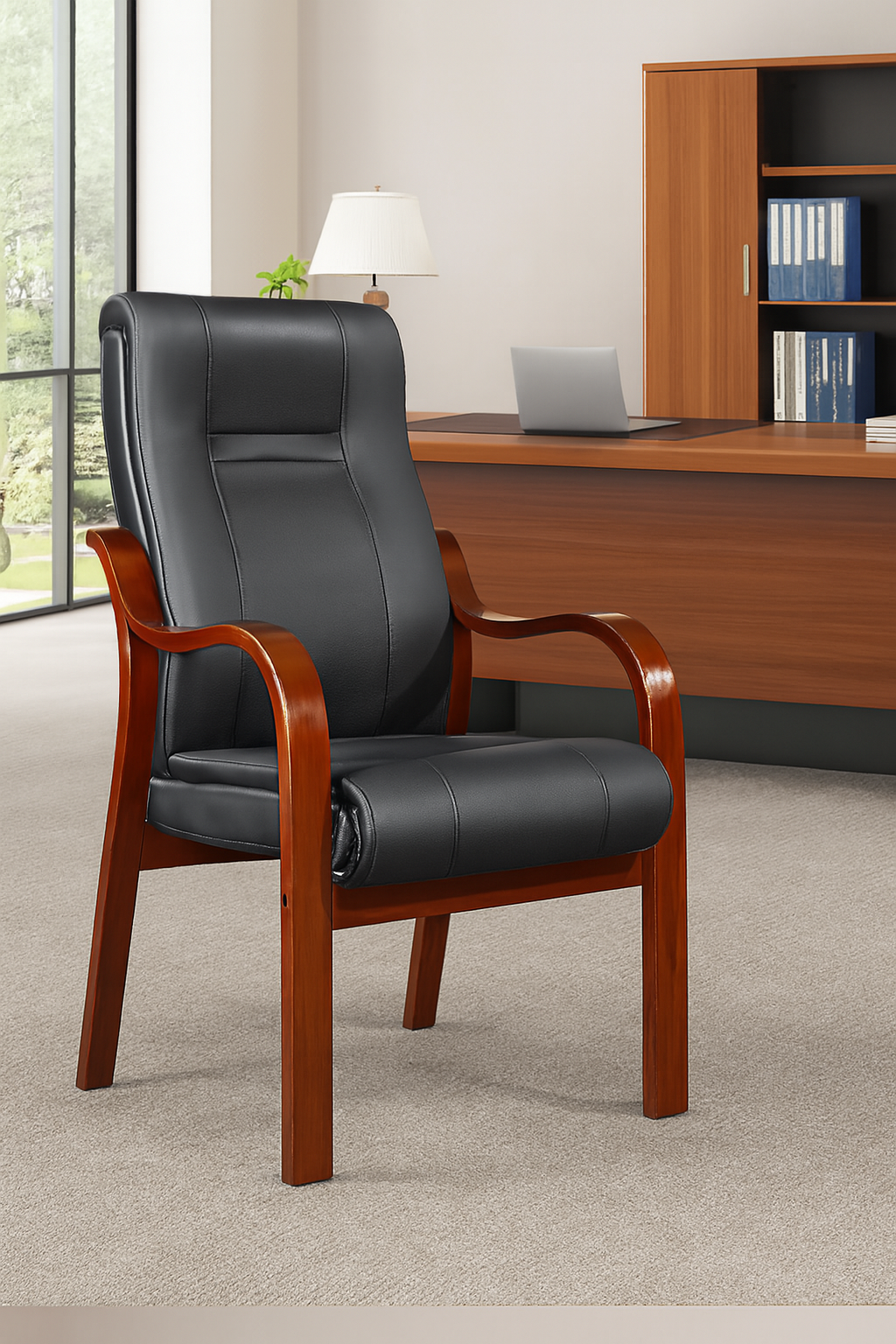 - Material: Genuine black leather upholstery for a sleek, professional look