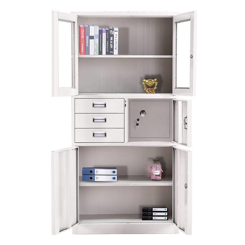Modern 4-Door Metallic Half Glass With Safe Filling Cabinet