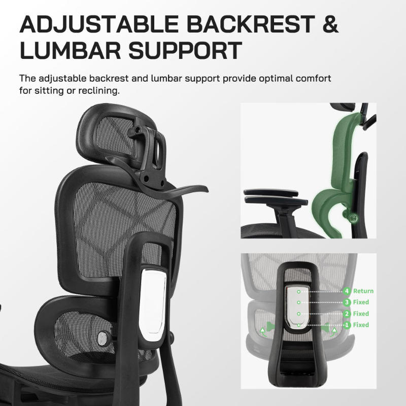 Precision Lumbar Support: Featuring a dedicated lower-back suspension system that reacts to your movements, providing continuous support as you shift between tasks.