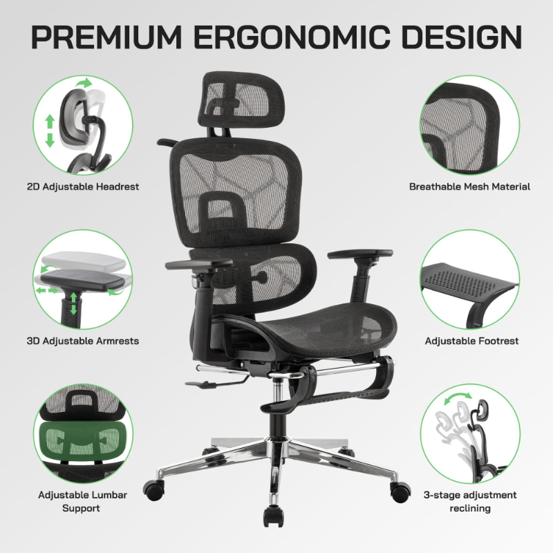 The “Recline & Refine” Footrest: A rare luxury in high-end task chairs—the integrated, retractable mesh footrest allows you to transition from focused work to a restorative break without leaving your seat.