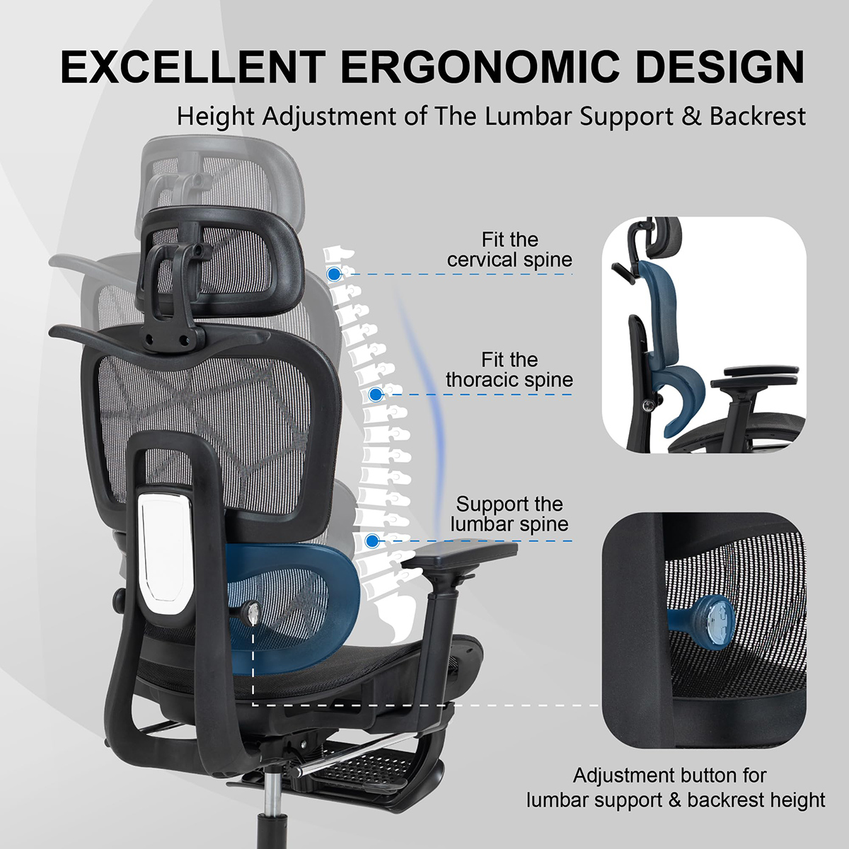 Triple-Zone Mesh Support: The unique split-back design provides independent support for your upper back and lumbar region, while the breathable “elastomer” mesh keeps you at a perfect temperature from morning to night.