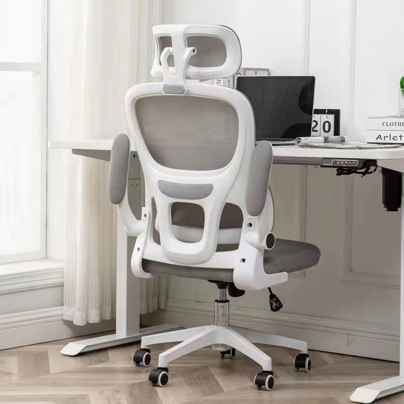 Sleek, Minimalist Aesthetic: With its clean white frame and sophisticated grey upholstery, this chair elevates any home office or corporate workspace with a fresh, contemporary look.