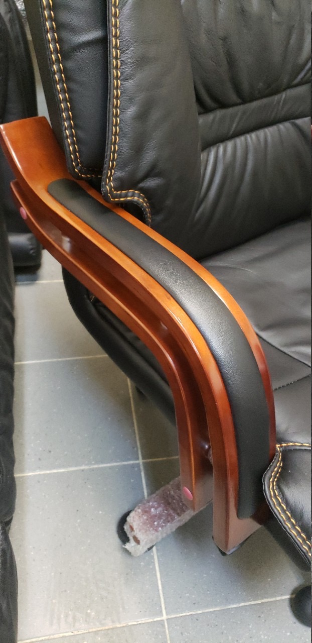 ๐ Regal Aesthetic: Premium black leather upholstery paired with hand-finished, polished wooden armrests and base for a classic, authoritative look.