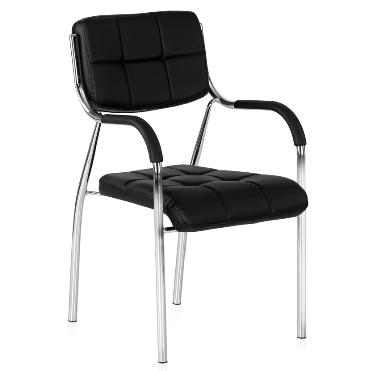 Make a bold statement with this modern black cushioned chair — a refined blend of style, comfort, and versatility. Its tufted seat and backrest deliver a plush, tailored look, while the sleek chrome-finished frame adds a touch of contemporary sophistication. Perfect for executive offices, salon waiting areas, or Airbnb setups seeking a clean, modern vibe. This chair elevates any space with understated luxury and professional appeal.
