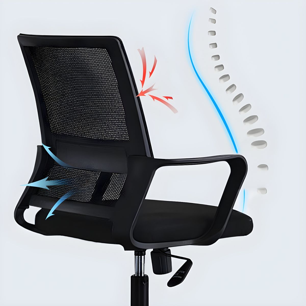 - Backrest: Ventilated mesh for airflow and posture support