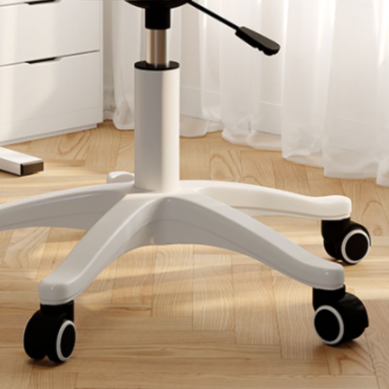 - Five-leg white base with smooth-gliding black-and-white caster wheels