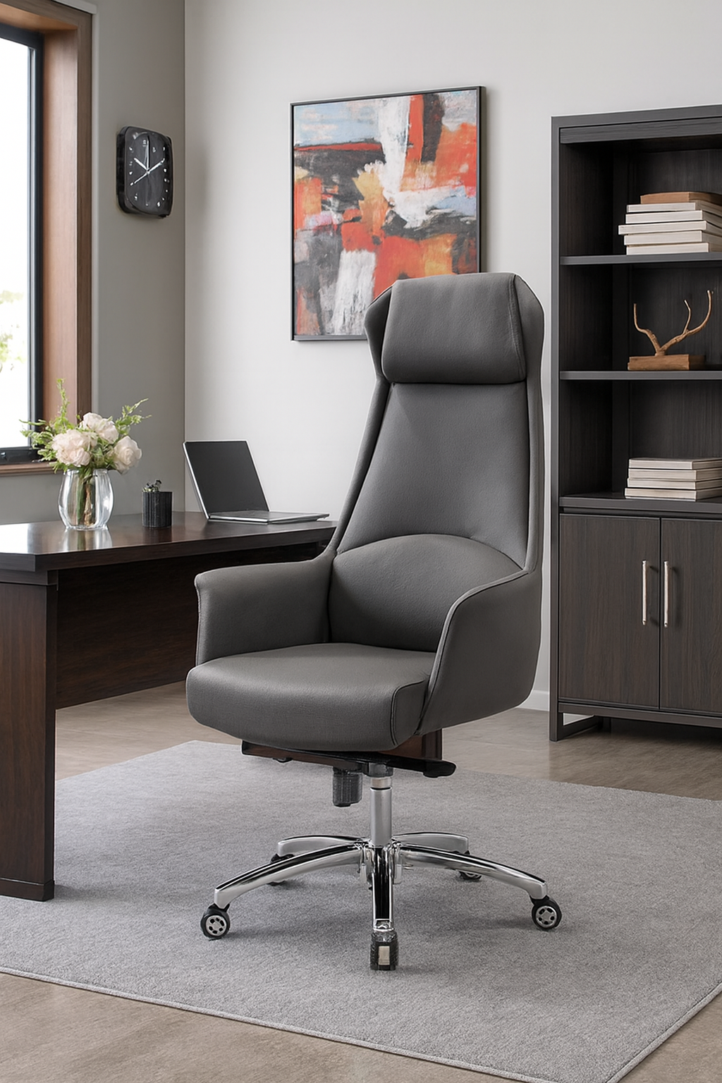 Transform your office into a haven of productivity and style with this modern ergonomic high-back chair. Upholstered in sleek gray faux leather, it combines contemporary aesthetics with superior comfort. The generously padded seat, armrests, and integrated headrest provide full-body support for long hours of focused work, while the adjustable height and smooth-rolling caster wheels ensure personalized mobility. Whether you’re outfitting a corporate suite, home office, or client-facing space, this chair delivers the professional polish and ergonomic excellence your setup deserves. Perfect for executives, creatives, and anyone who values comfort without compromising style.